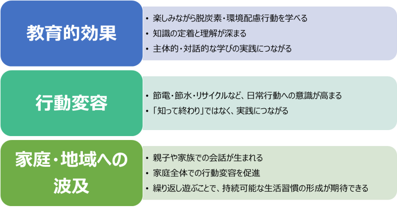 こうした背景を踏まえ、「遊びながら学ぶ」ことで環境問題を身近なものとし、行動につなげることを目的として開発しました。